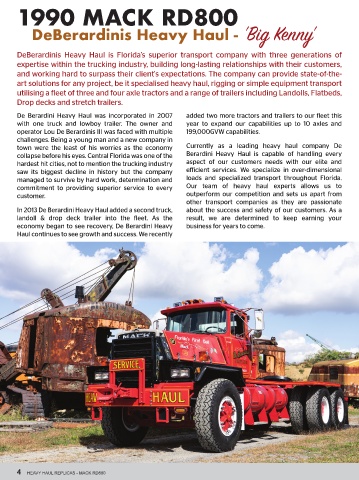 In 2013 De Berardini Heavy Haul added a second truck, about the success and safety of our customers. As a