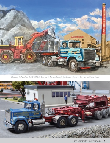Above: 5x7 postcard of 2023 Bob Evans painting included with the purchase of Sid Kamp's Superliner. HEAVY HAUL REPLICAS - MACK SUPERLINER 13