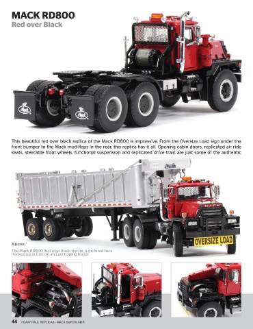 This beautiful red over black replica of the Mack RD800 is impressive. From the Oversize Load sign under the